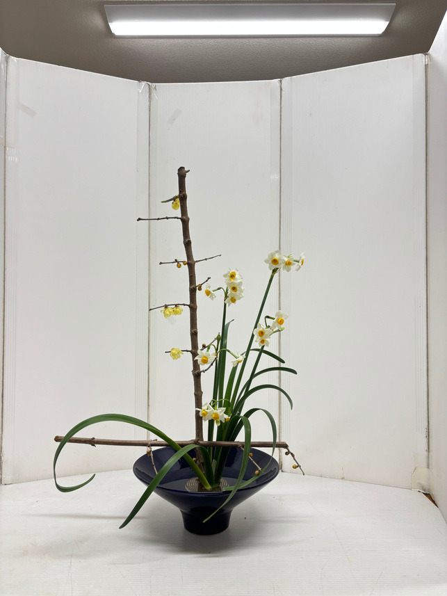 蝋梅、水仙、ストック、フリージア、スイートピー。それぞれとてもよい香りで、春の香りに包まれた初稽古となりました。