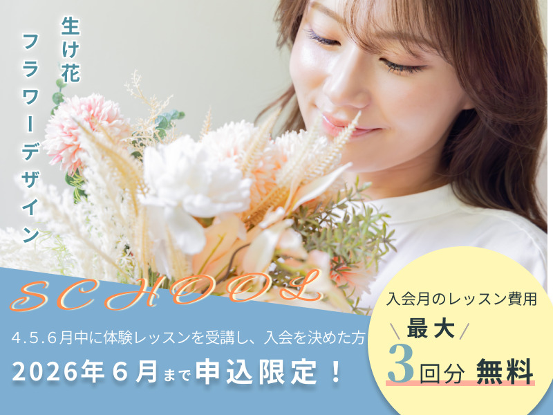 4月・5月・6月限定一か月月謝無料モニター募集! 投稿日 2026年4月20日 著者 wpmaster カテゴリー お知らせ 4月~6月中に体験レッスンを申し込まれてご入会された方限定で一か月月謝無料モニターを募集しております。 ご自分に合うかどうか 続けられるかどうか しっかり見極めていただきたいので一か月月謝無料で通い放題!この機会にお花を始めてみませんか? 体験レッスンお申し込みはこちら